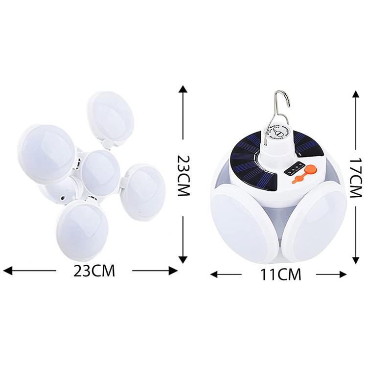 به همراه باتری داخلی قابل شارژ با سیم و پنل خورشیدی قدرت نوردهی بالا با قابلیت تنظیم 5 حالته ذخیره انرژی، پر نور، کم نور، فلاشر و SOS جنس بدنه پلاستیک ABS مقاوم در برابر رطوبت سطحی و ضربه دارای سیم شارژر و آویز جهت قراردادن در ارتفاع مانند سقف چادر و ... دارای مجموع 45 لامپ سفید مهتابی و نمایشگر میزان شارژ باتری گارانتی سلامت محصول تضمین کیفیت محصول ضمانت قیمت محصول