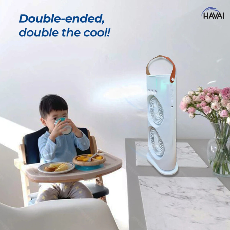 پنکه مه پاش شارژی دو فن گردان دو قلو، نوعی پنکه است که با برق شارژ میشود، دارای دو فن و قابلیت چرخش (گردان) است و همچنین قابلیت مه پاشی دارد.