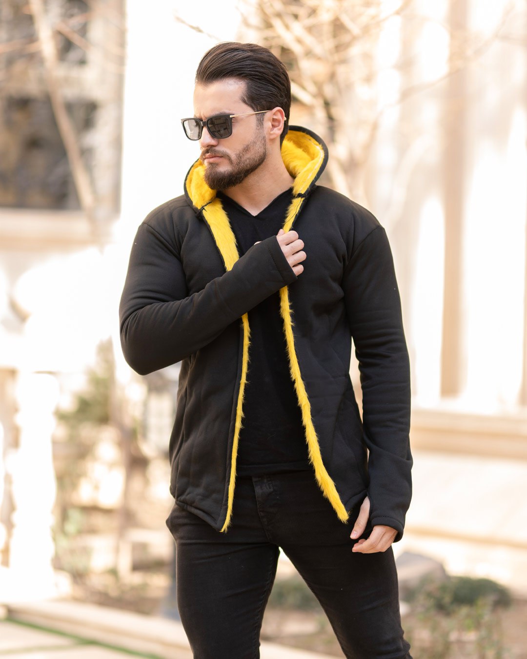 هودی مردانه لبه خز مدل Lazar (زرد)