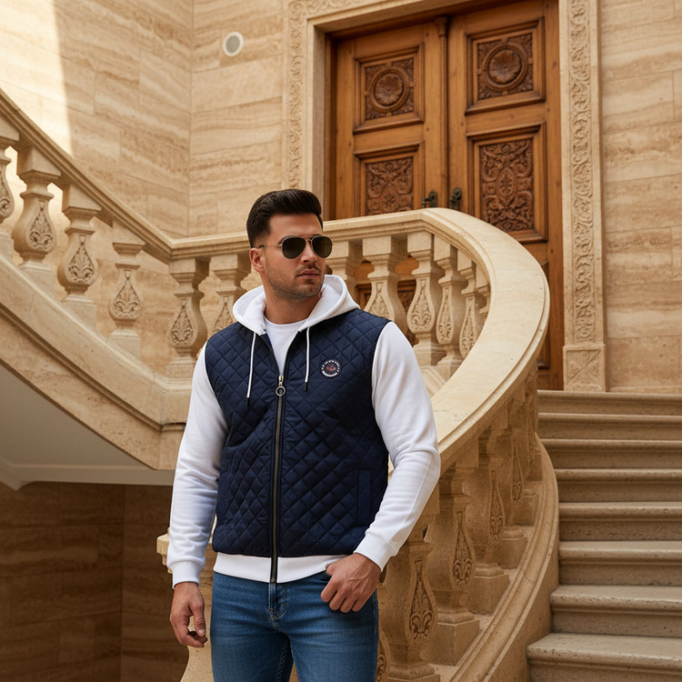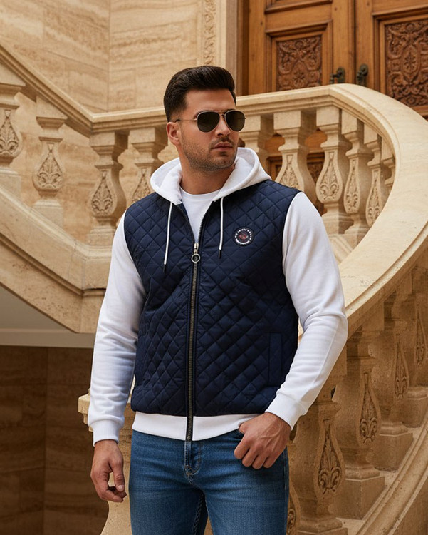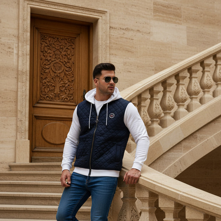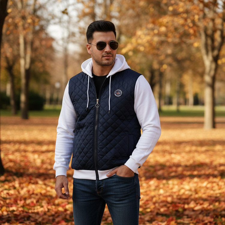کاپشن کلاه دار مردانه پاییزه سورمه ای سفید Eric مدل 2001
