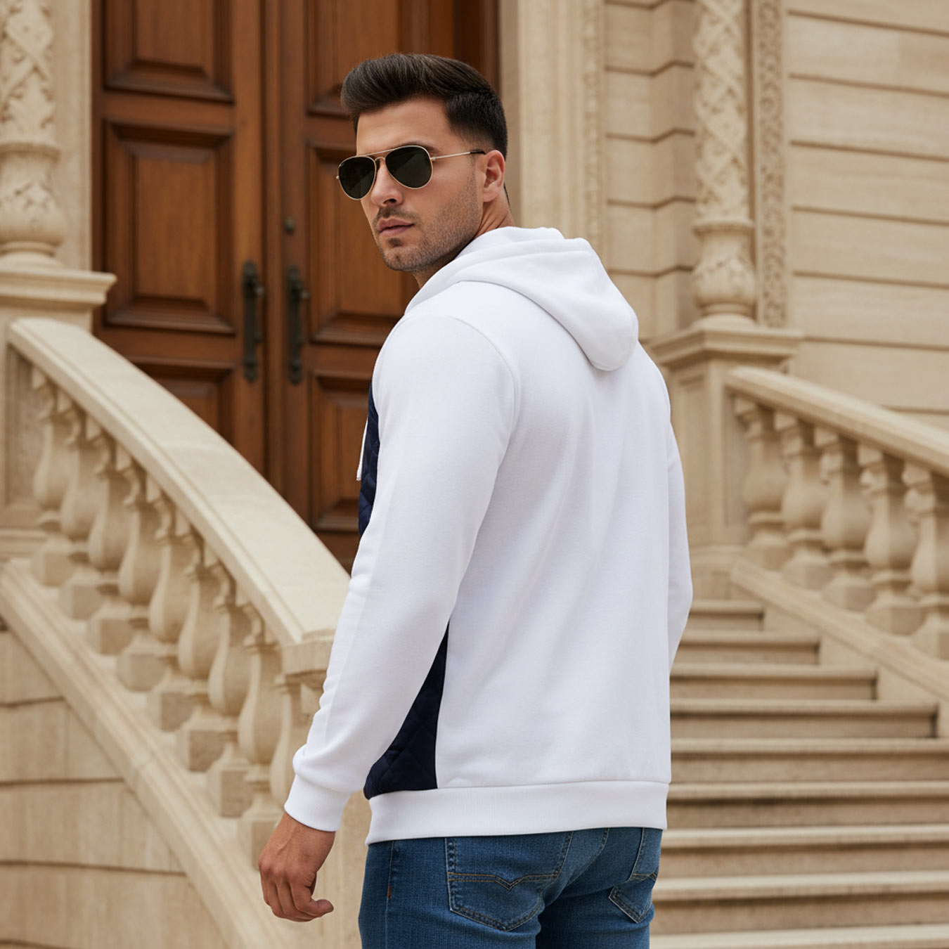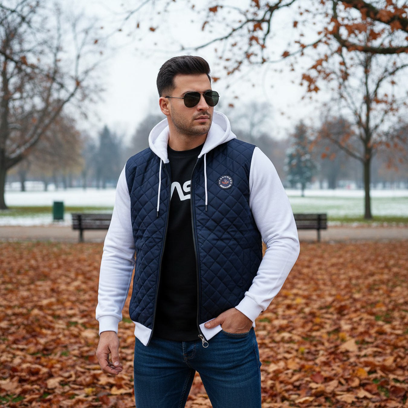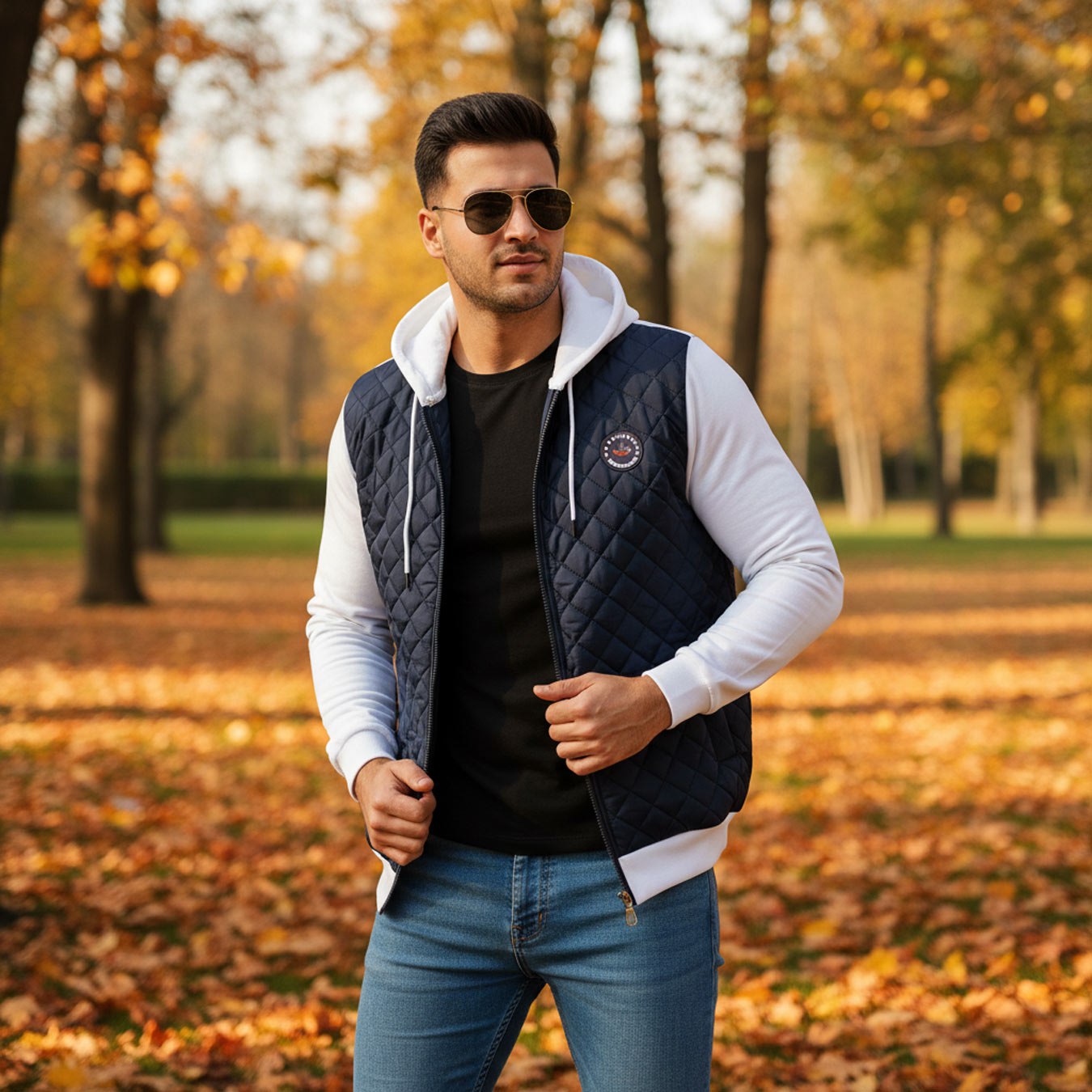 کاپشن کلاه دار مردانه پاییزه سورمه ای سفید Eric مدل 2001